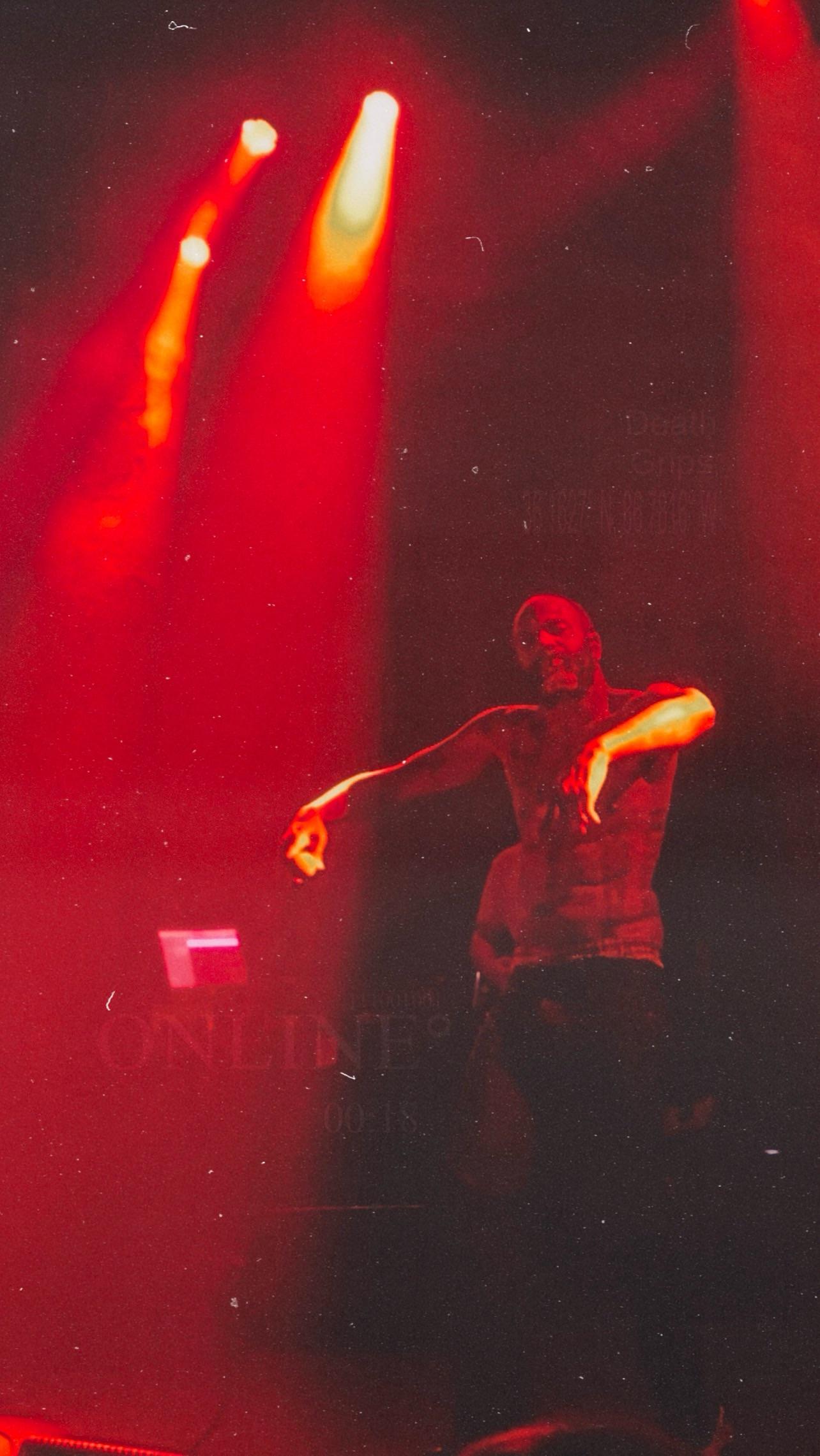 With doors opening at 7 p.m., I walked in anticipating a dreadful 2+ hour wait for the notoriously late group. Death Grips has rarely toured with a supporting act–that didn’t change for their 2023 tour–yet the pre-set wait did not disappoint. In the background of the ambient chatter of the sold-out crowd played unreleased Death Grips instrumentals. Reminiscent of their album Fashion Week, the pre-set playlist had the typical industrial influence of a Death Grips project, but at a higher bpm with an EBM flair. As nice as it would have been to hear Ride’s ear-splitting vocals over the instrumentals, I still found myself nodding my head to the gritty beats.
